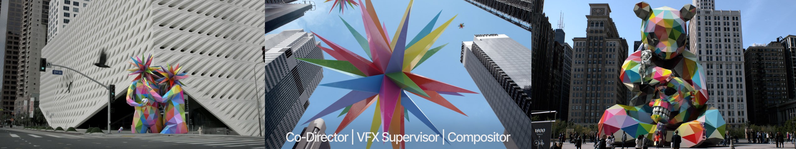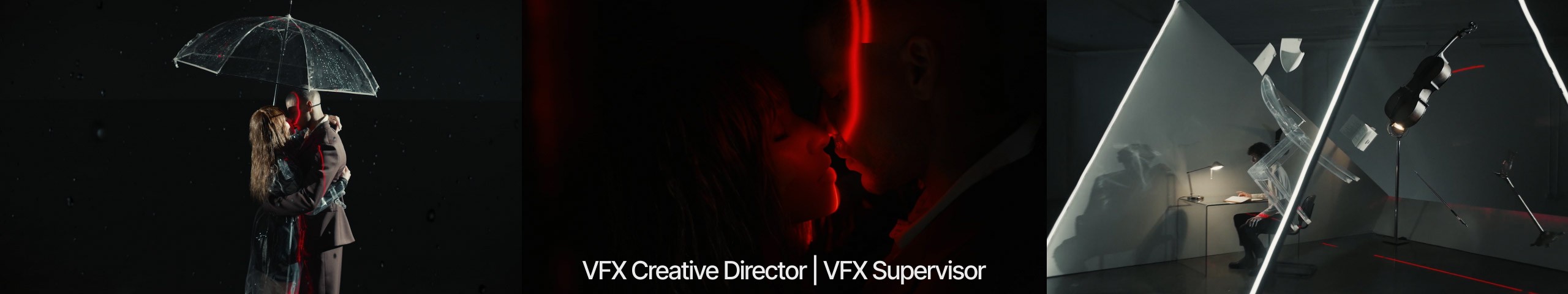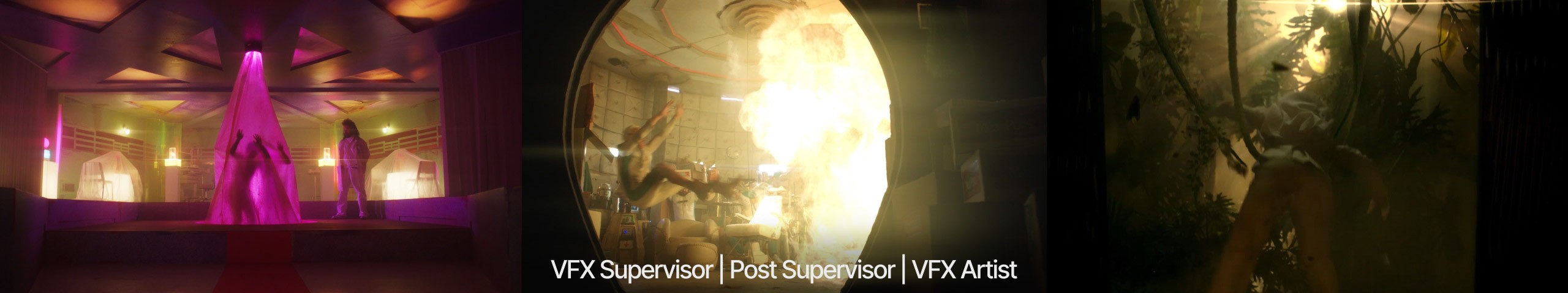 The following montage highlights a wide spectrum of work through recent years. Projects not included here can be seen on my IMDB page for reference. This showcase represents only those projects that I had a significant role in bringing the visuals to life, either as a director, supervisor and/or artist. Breakdowns with roles/responsibilities follow.